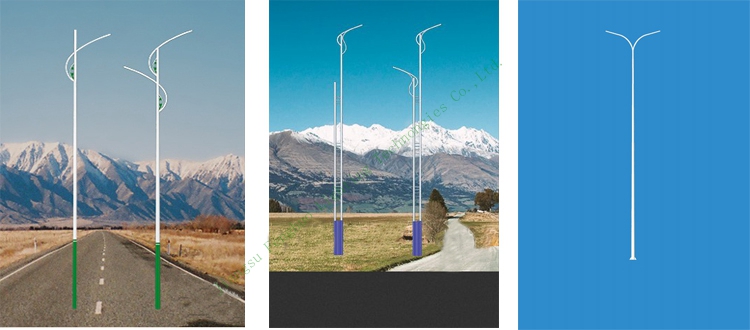 Most of people use steel pole on the street,Because it is hot deep galvanized.