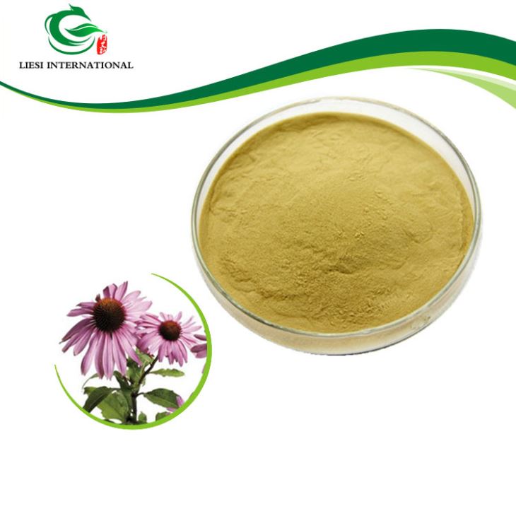 Echinacea extract is a product extracted from Echinacea Purpurea, E. agustifolia or E.pallida and is a light yellow or yellow-green fine powder. The main components of phenolic compounds, but also contains a variety of alkylamine, flavonoids, polysaccharides and a small amount of volatile oil. Antibacterial, anti-virus, improve immunity function. Can be used as an immune regulator and immune stimulating hormone. Anti-virus, anti-fungal, anti-tumor and anti-inflammatory effect. Can stimulate the immune response, enhance the immune system, prevent influenza, reduce the risk of colds, adjuvant arthritis or skin conditions, promote wound healing, relieve pain in toothache and burns, fight bacterial and viral infections, cancer adjuvant therapy.