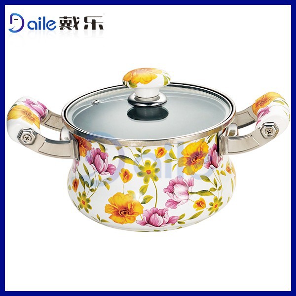 - Golden Flower Decal Kitchen Cookware Set/microwave Casserole Sets/enamelware Cookware Set 1 Pieces / (Min. Order)