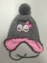 Quality Acrylic contrast color jacquard knitted kid earcuff hat with pom and embroidered