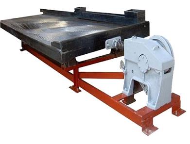 Discharge and concentrate and s U-steel support cradle in the beneficiation process is in with a rifled the tilt of the bed surface of ore particles from the bed surface angle to the ore trough into, at the same time to sink the horizontal supply flush, and mineral particles in gravity and lateral flow momentum, the bed surface for reciprocating motion asymmetry produced by the inertia and friction effects, according to the proportion and granularity hierarchical and along the bed surface longitudinal motion along the inclined bed transverse dynamic therefore, proportion and different particle size of ore particles along their direction of movement of the fan-shaped flow, respectively, from the end of the tailing side of different area, and finally was assigned to concentrate, middlings and tailings.
