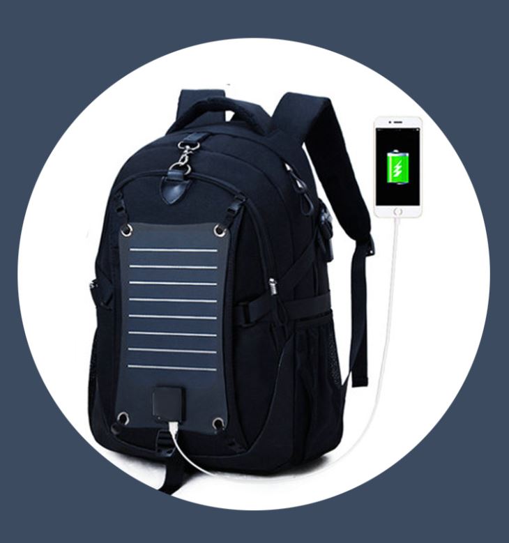 This waterproof solar backpack is designed with a Detachable Solar Panel which are fixed with clips. The solar panel will be removed when you want it to be a regular laptop backpack.
